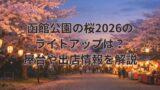 この記事では、松前さくらまつり2026のライトアップ情報を中心に、屋台の場所や営業時間、駐車場の目安、混雑を避けるコツまで、初めて行く方にもわかりやすく解説します。